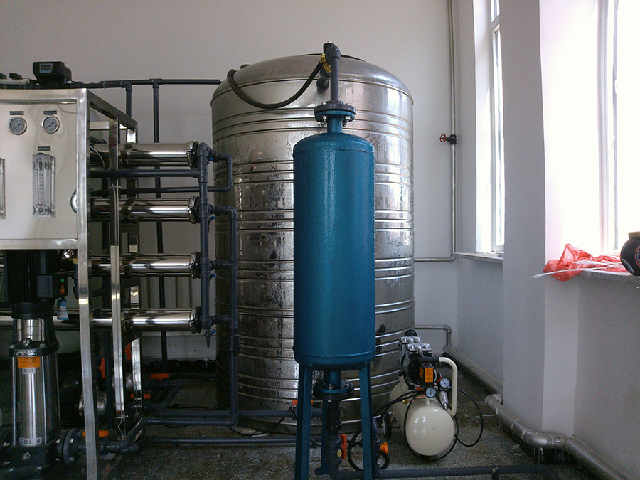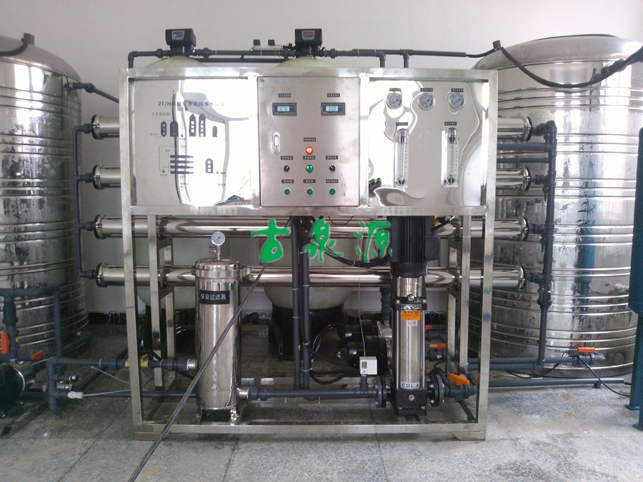 該項(xiàng)目現(xiàn)場(chǎng)位于遼寧省阜新市,原水為深井地下水,出水水質(zhì)要求達(dá)到飲用水標(biāo)準(zhǔn),用來(lái)給學(xué)生們食堂做飯及飲用。我們給設(shè)計(jì)研制了一套產(chǎn)水量為2T/h的反滲透設(shè)備,采用了4組8040的白鋼膜殼配上8支陶氏4040的反滲透膜,產(chǎn)水量達(dá)到2T/h。在出水端,配備了2-40的南方臥式泵兩臺(tái)(一備一用),采用變頻恒壓供水系統(tǒng)進(jìn)行控制,以保證用水端的水壓恒定水量充足。