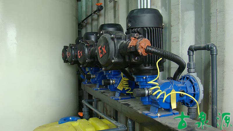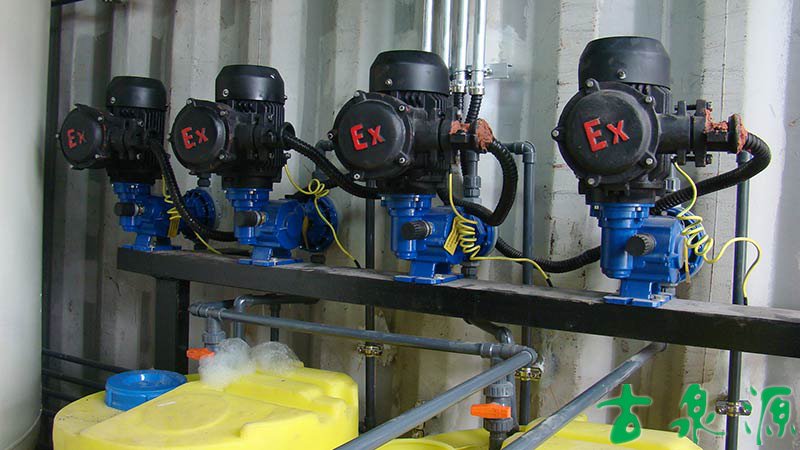 加藥系統(tǒng)(dosing system)主要由溶液箱、攪拌箱(帶攪拌器)、計(jì)量泵、液位計(jì)、電控柜、管路、閥門、安全閥、止回閥、壓力表、過濾器、底座、扶梯等組成(可根據(jù)用戶實(shí)際要求配置)。加藥系統(tǒng)根據(jù)所需藥劑濃度,在攪拌箱內(nèi)配制,經(jīng)攪拌器攪拌均勻后投入溶液箱、用計(jì)量泵(加藥泵)向投藥點(diǎn)或指定的系統(tǒng)中輸送所配制的溶液。